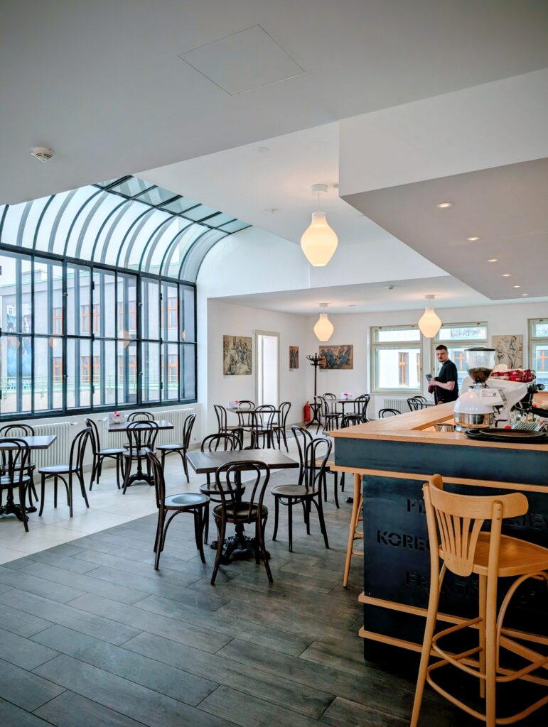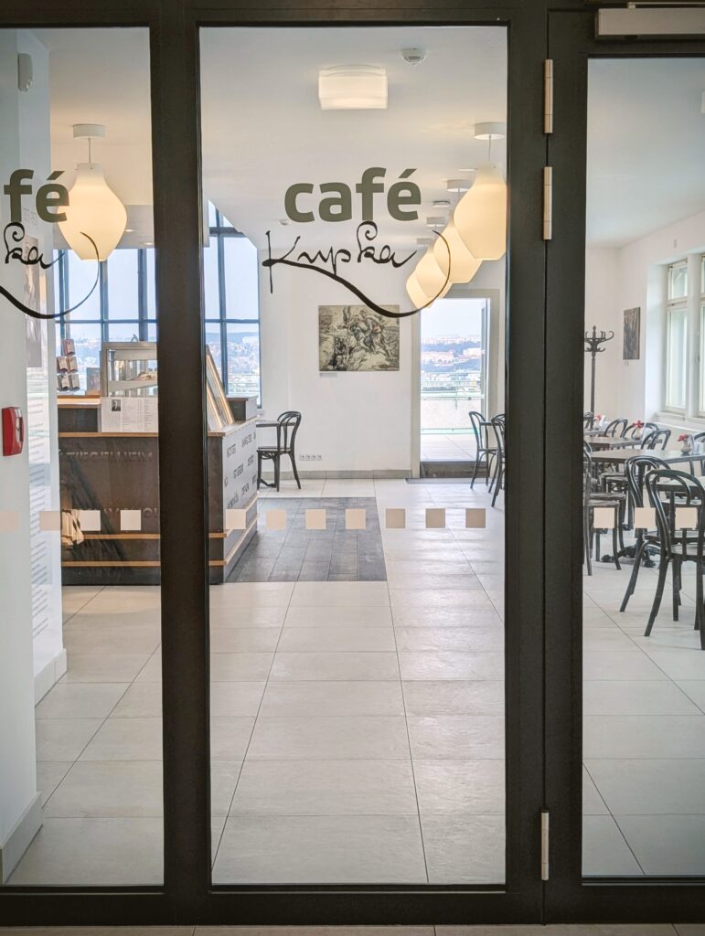 Být básník, sem bych vzala svou lásku po májové vycházce na Petřín. Z mostu Legií sejděte uprostřed po schodišti (je tam i výtah!) na Střelecký ostrov a na jeho jižním konci je v budově sportovního klubu vlevo vchod do kavárny KKAFE. Budete příjemně překvapeni velkorysým prostorem s výběrem sezení na pohovkách i židlích. Když přijdete sami, potěší vás kout se stolkem pro jednoho a knihami. Velké kruhové zrcadlo v čele místnosti, piano a knihovna místo příjemně zabydlují. Na tzv. motivation wall si můžete pročítat citáty a moudrosti. Všechno je tu neokoukané, ale ten výhled! Výhled je nejvíc – velkoformátová okna směrem k Národnímu divadlu a Žofínu přes Vltavu vás ohromí. O zážitek nepřijdete ani když prší – jste přece uvnitř.