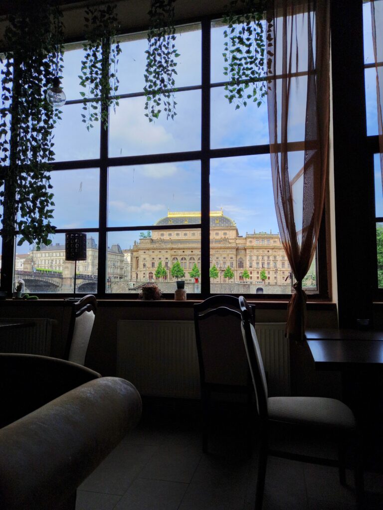 Poctivě jsem obešla všechny (obě) kavárny na Vítkově a nejlepší je ta třetí – tato! Má terasu s výhledem přes koleje a Karlín až k Hradčanům