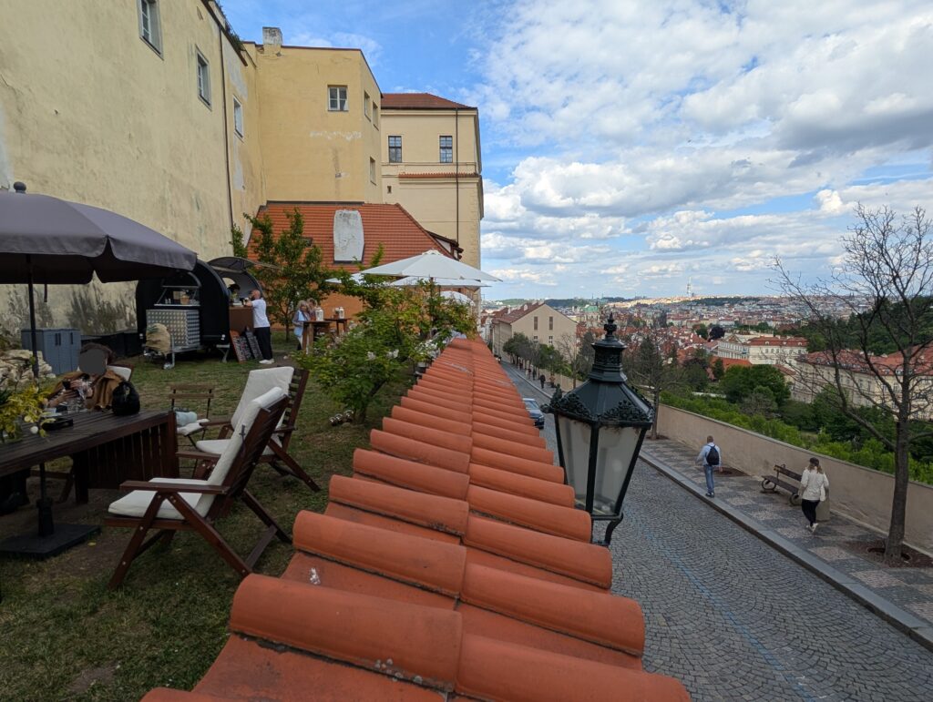 V loňské letní sezoně byla na jinak nepřístupné a skvěle ukryté zahradě s fantastickým výhledem v provozu občerstvovna, která letos ještě neotevřela (ale já v ní doufám, protože to bylo jedinečné místo). Snad to provozovatelé nevzdali. Vyšplhat sem do kopce za výhledem na Petřín, klášter a také na Malou Stranu stálo za spálené kalorie. Káva a další nápoje se podávaly z trucku a byl tu božský klid.